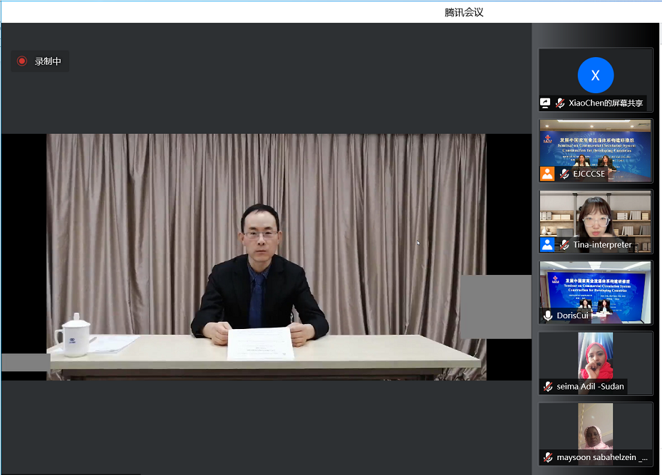 商务部国际商务官员研修学院张海龙副处长出席线上结业典礼并致辞。张处长为研修班的成功举办付出的努力表示衷心感谢,对各位官员顺利完成研修活动表示热烈祝贺。张处长表示,相信大家对发展中国家商业流通体系的发展和构建情况有了更深入的理解,在中国开放型经济发展的大背景下,我们一定还有更多的机会进行沟通与合作。